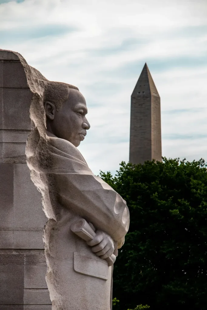 The DC MLK Memorial is the first memorial on the DC Mall not dedicated to a war, president, or white man. The DC MLK Memorial features a 30-foot statue of Martin Luther King, Jr., emerging from stone. It symbolizes his emergence from the “mountain of despair” as described in his “I Have a Dream” speech. It is surrounded by a Wall of Remembrance with 14 of his powerful quotes, all set on a 4-acre site by the Tidal Basin, honoring his fight for freedom, justice, and equality.