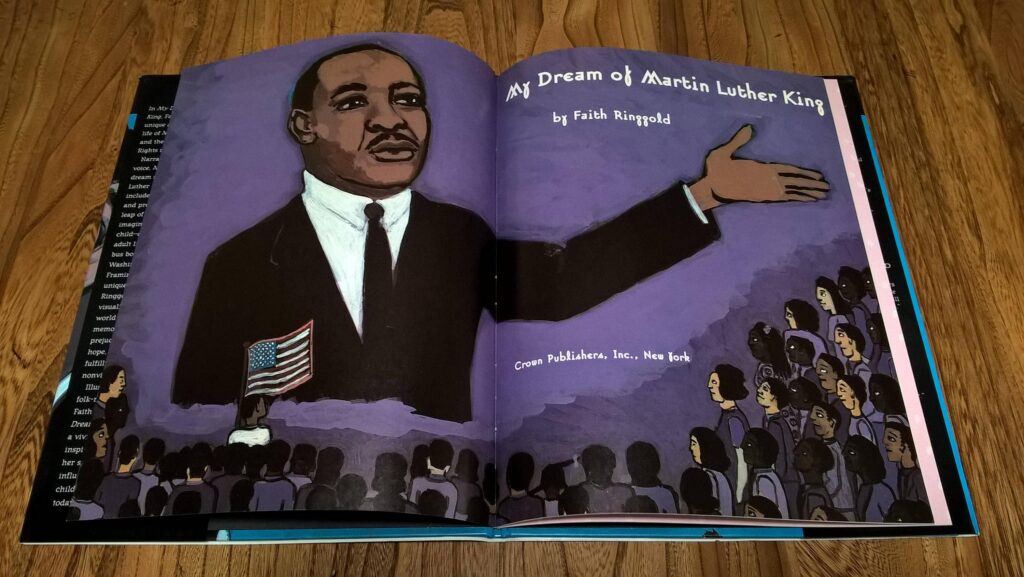 Black artist and activist Faith Ringgold created this children’s book, which tells the story of Martin Luther King’s life, narrated by a child’s understanding of Dr. King’s life through an imaginary dream.